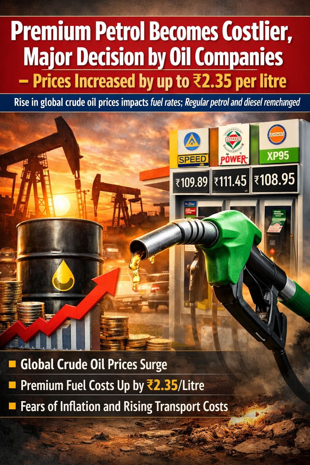👉 Rise in global crude oil prices impacts fuel rates; regular petrol and diesel remain unchanged for now